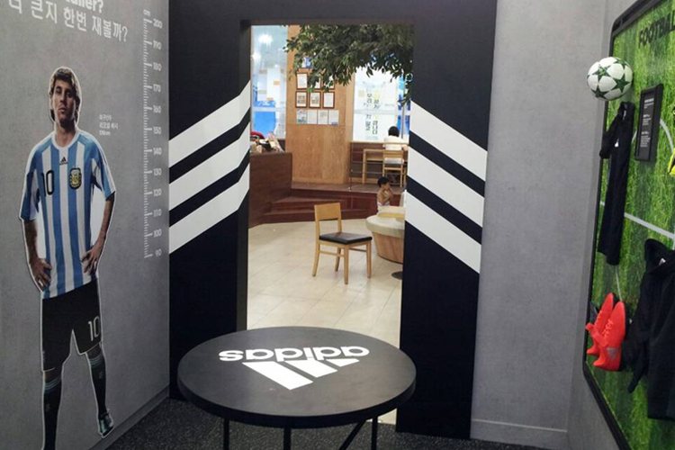 이노버코리아와 아디다스 그리고 수원 스포츠 키즈클럽 PEC가 합작하여 진행한 SHOWCASE 공간으로서 키즈 짐의 휴식 공간과 신제품 정보를 한 눈에 볼 수 있는 장소로 기획 되었으며 크레이티브 아이디어인 제품 판매 밴딩머신과 인스타그램 머신이 비치되어 브랜드 홍보의 새로운 문을 열었습니다.